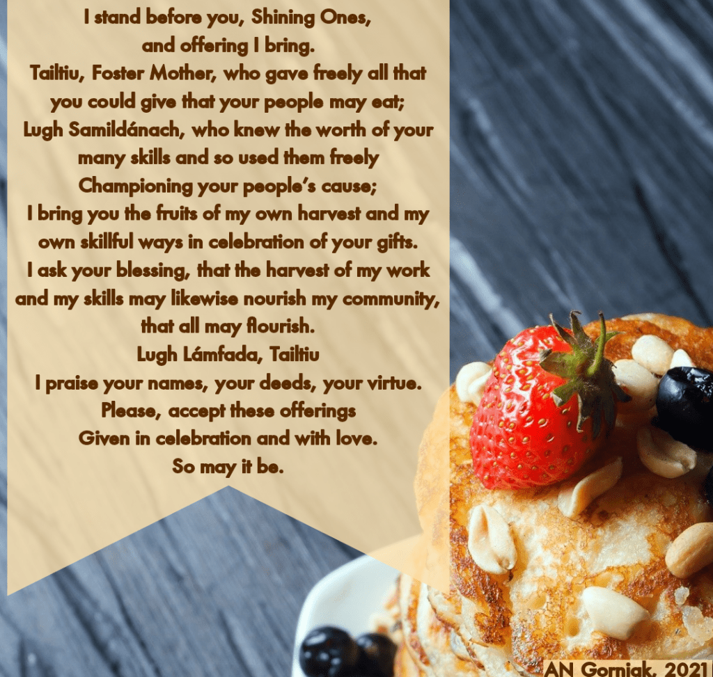 I bring you the fruits of my own harvest and my own skillful ways in celebration of your gifts.